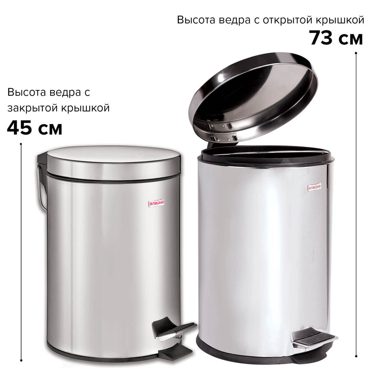 Ведро-контейнер для мусора (урна) с педалью LAIMA Classic, 20 л, зеркальное, нержавеющая сталь, со съемным внутренним ведром